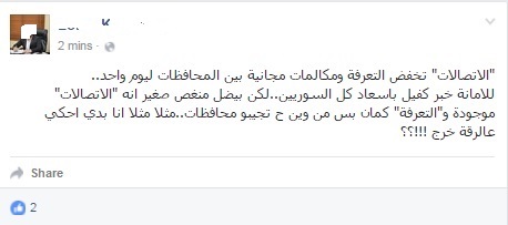 “الاتصالات” تخفض التعرفة ومكالمات مجانية بين المحافظات ليوم واحد.. وسوريون يسخرون: “ليش ضل محافظات” !!؟؟