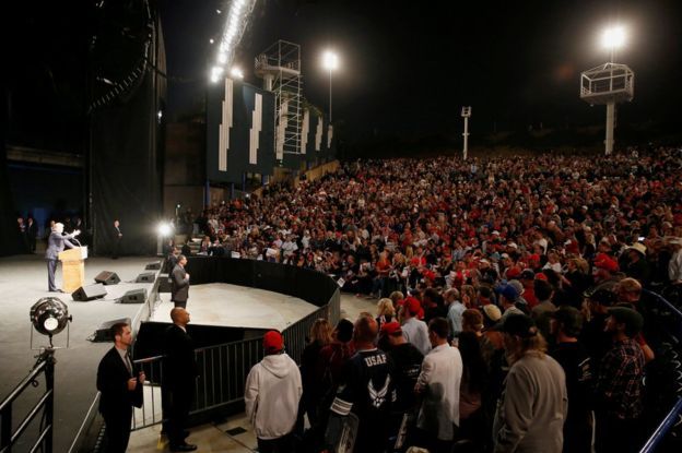 وامتلأت قاعة المسرح في كوستا ميسا بأكثر من 1800 شخص، وعادت المئات أدراجها لعدم وجود مكان لها لحضور تجمع ترامب.